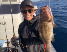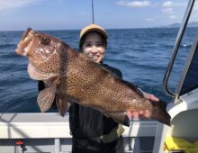 スーパーライトジギング便 オウモンハタ、今シーズン最大55.5㎝出ました❗ N様おめでとうございます👏👏👏 全体でランカーサイズ(50オウモンハタ)3本、30~4・・・