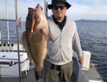 SLJ、50オオモンハタキャッチ😄👍 シロアマダイ狙いもしっかりキャッチ😄👍 他魚は、良型アジ、サバ、イトヨリ、等賑やか。 沢山のリリースにご協力いただきありがと・・・