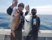 ライトジギング&鯛ラバ便❗ 高級魚Wキャッチ~😄👍 おめでとうございます👏👏👏 ハマチ~ブリまで青物楽しめました🎵 ご乗船ありがとうございました~🙇♀️ ・・・