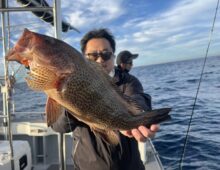 こんにちわ 副船長の野原です😄 今日も元気に出船してきました〜! 45㎝白アマ出ました〜😄 こちらも鯛ラバで😆 ・・・