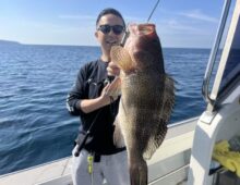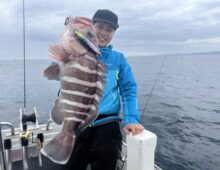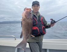 こんにちわ 副船長の野原です 前半から魚の活性少し低く、暇しない程度に当たってくれました💦 オオモンハタ頭42㎝、あ・・・