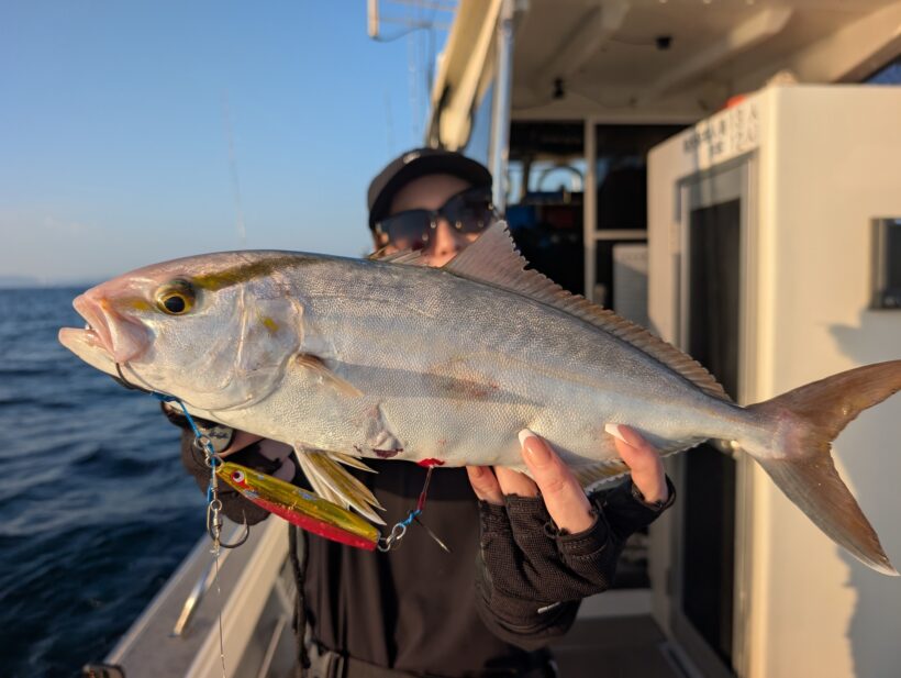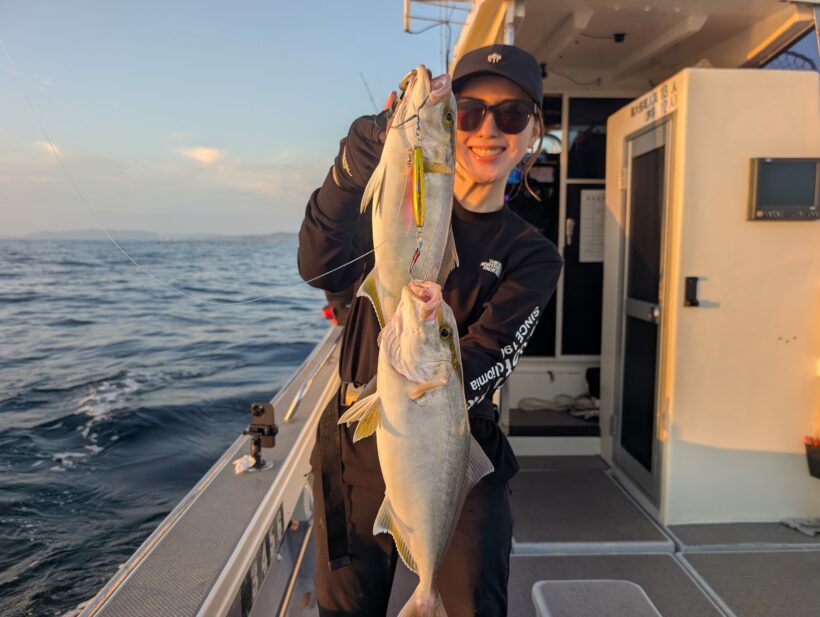 ライトジギング&鯛ラバ 午後便も大漁でした(^^♪ 2025.11.08 釣果情報 海心丸船長の湟打です! 午後便 ライトジギング&タイラバ お二人様で〜フィッシュフィッシュ〜😃♪ ロッド曲がりっぱなしで大漁でした! 午後便は週末も人数少なくオススメですよ〜! 本日もありがとうございました〜! #海心丸 #ブルーピア #カンパチジギング #ライトジギング #スピネギ Tweet