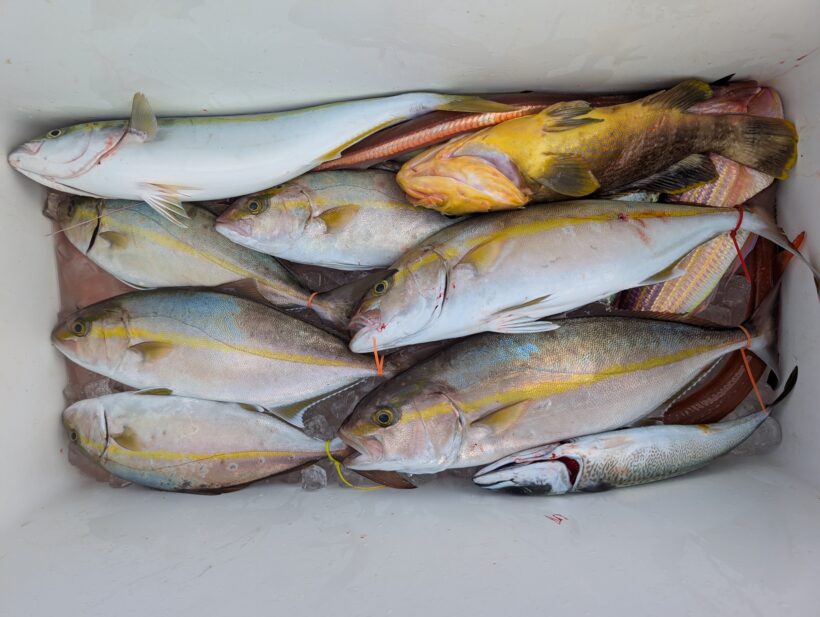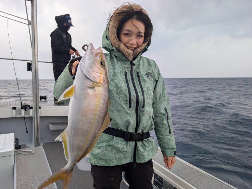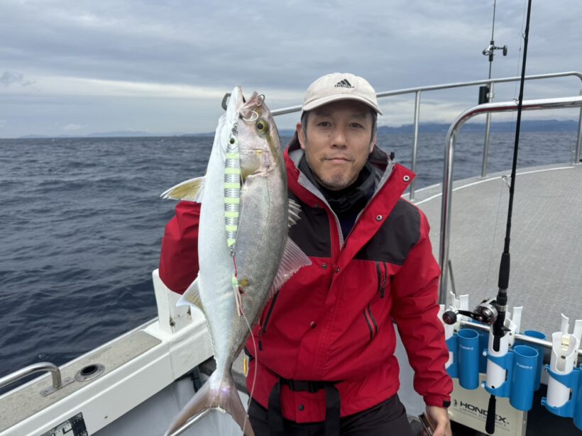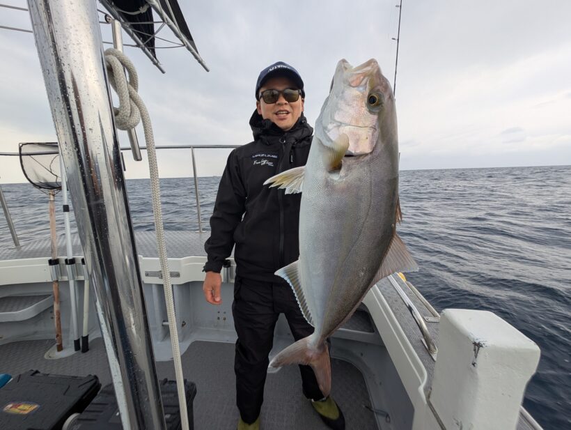 スピネギ&スローJで大型魚狙い! 2025.11.25 釣果情報 海心丸船長の湟打です。 スピネギ&スローJで大型魚狙い! モンスター不発もカンパチあたりました😃 雨の中、頑張っていただきありがとうございます。 ご乗船ありがとうございました〜! #海心丸 #ブルーピア #カンパチジギング #ライトジギング #スピネギ Tweet