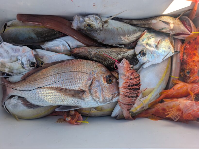 60マダイ、ジャンボカイワリ、オウモンハタ、イトヒキアジ、ヤガラ、ミノカサゴ、アオハタ、等など、他魚も多彩に。