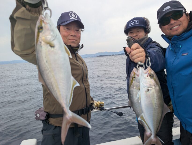 ライトジギング&鯛ラバ! 2026.02.11 釣果情報 海心丸船長の湟打です。 ライトジギング&鯛ラバ! 0ノット潮でしたが、皆さん頑張って釣っていただきお見事でした😃 潮次第でシオ〜カンパチ期待できそうです。 ご乗船ありがとうございました〜! #海心丸 #ブルーピア #カンパチジギング #ライトジギング #スピネギ Tweet