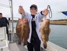海恋丸の野原です 風も波もある中 2名でひたすらしゃくって頂きました✨ シオ大 オオモンハタ 50まで ・・・