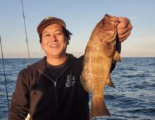 オウモンハタ狙いで出船! お客様より2日分の鍋ネタ指令~😊 結果、本命30~46㎝10本、ホウキハタ、等々、鍋ネタバッチリ釣っていただきました--😆👍 あかっぽとメイチダイの・・・