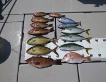 2号艇のスーパーライトジギング便! コロダイ、オウモンハタ、アカハタ、ハガツオ、アイブリ、等楽しめました😄👍 前半調子よかったので大漁かと思いきや後半失速でした😅 ご乗船・・・