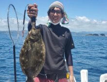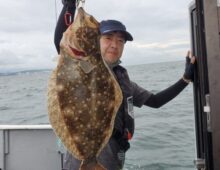 スーパーライトジギングで座布団ヒラメキャッチ⤴⤴