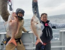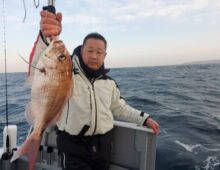 鯛ラバ便❗ 想定より波が高くて早帰りとなってしまいました。 まずまずアタッていただけに残念、また日和のよい日にお待ちしております🙏 釣果は、マダイの他、レンコダイ、ホウボウ、・・・