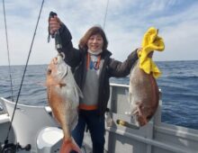 ノマセ便&鯛ラバ便❗ 鯛ラバで紅一点女性アングラー様が、60マダイ連発😄👍 ノマセは、ヒラメ、ウッカリカサゴ、メジロ、アオハタとよくアタリました😄👍 そして最後の流しで強烈な・・・