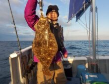 ノマセ&ジギング❗ 朝イチに強烈な引きでモンスターらしきやりとりがありましたが残念ながらフックオフ😥 しかし、透かさずにドカーンときたのは座布団ヒラメ(70㎝)でした。・・・