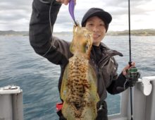 ブルーピアでは珍しく2艇ともティップランで出船❗ 1号艇7杯、2号艇9杯、計16杯と数は出ませんでしたが、キロアップが数杯入って楽しました😄👍 2号艇はエギでランカーオウモンハ・・・