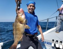 根もの&タイラバで出船! またモンスターキャッチです! 記録級のホウキハタ79㎝、7.5k。おめでとうございます😄👍 他に50㎝級のクエ、オオモンハタのWキャッチ、大・・・