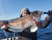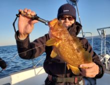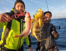 アカムツジギングの予定でしたが、波高の為、近海ジギング→クロムツジギングリレーに変更していただきました。 皆さん波の中頑張っていただき両方とも全員安打達成することができました・・・