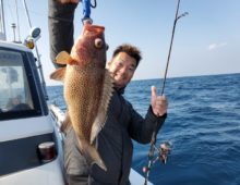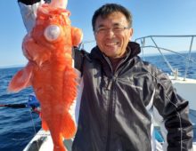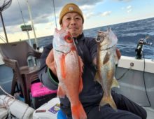 本日は正月用にとアコウダイ釣りを釣りに来て下さいました。 よくアタッてきて、全員マルチ安打達成❗ 竿頭は6安打と楽しめました。 大物ハンターKさん。東京から駆け・・・