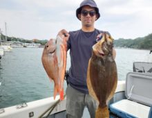 スーパーライトジギング&タイラバで出船。 マダイ、オウモンハタ、シイラ、イトヨリ、ホウボウ、サバフグ、サバ等が釣れました。 台風後のうねりが残る中、頑張って釣っていただきま・・・