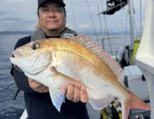 海恋丸の野原です ほぼ0ノットのきっつい中頑張って頂きました😨 真鯛 60㎝ないくらい ・・・